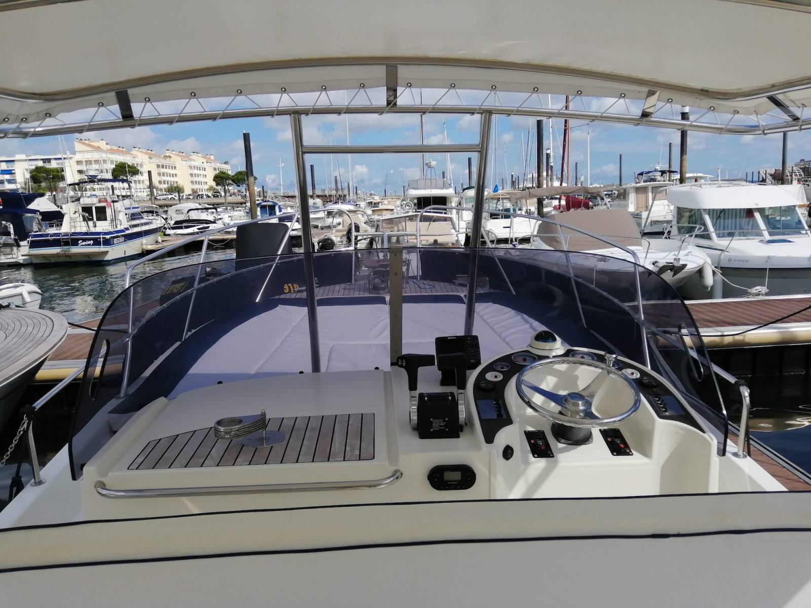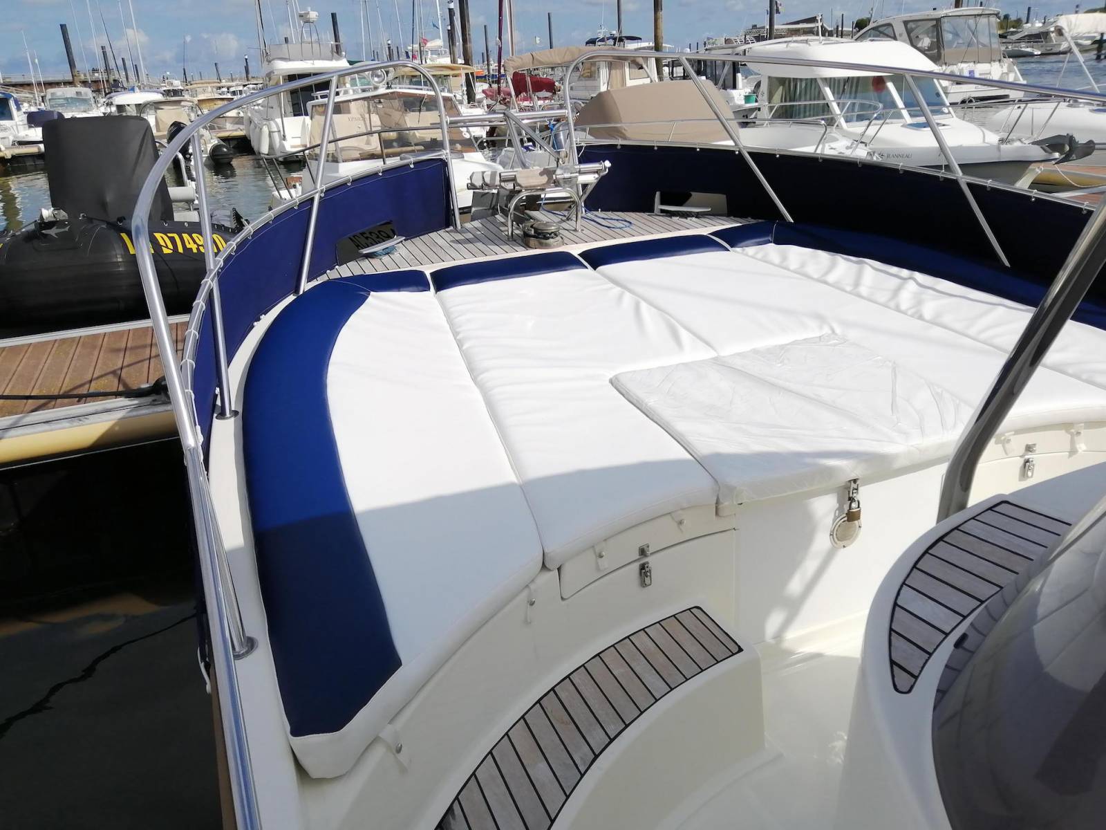 Pour votre confort il dispose d'un grand bain de soleil avec une table pour pic-niquer. Ce beacher est équipé également d'un sondeur ( GPS ), d'un bimini pour vous protéger du soleil .